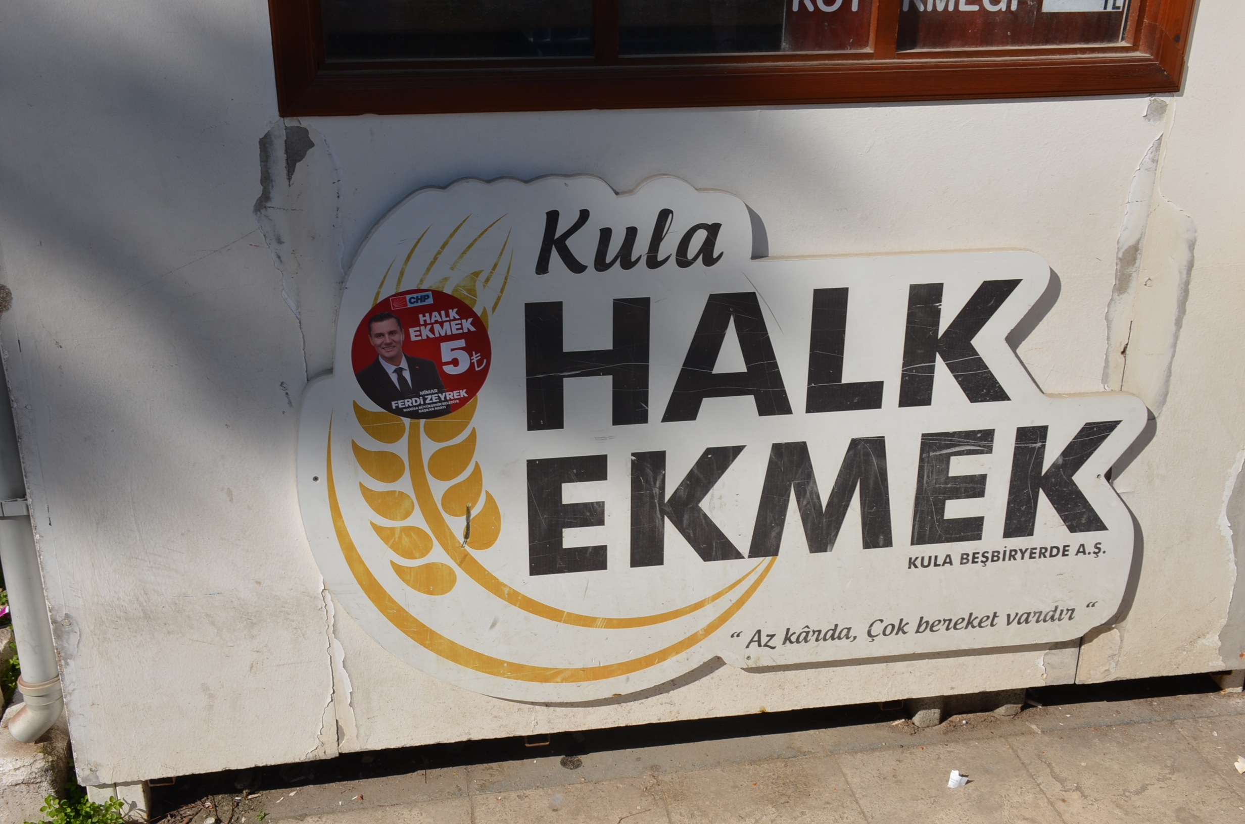 CHP’nin Manisa Büyükşehir Belediye Başkan Adayı Ferdi Zeyrek, Kula ilçesi ziyaretinde Kula Belediyesi tarafından 1,5 yıldır 5 liradan satışa sunulan Halk Ekmek Büfesi’ne 5 lira vaadiyle ilişkilendirilen reklam stickerlarının yapıştırılmasıyla ilgili olarak Halk Ekmek Büfesi’nden ekmek alan Kulalı vatandaşlar CHP’li adayın vaadini gülünç buldu.