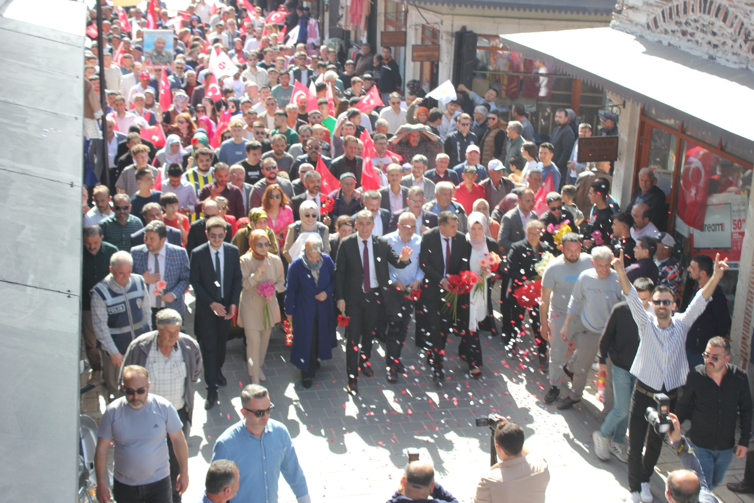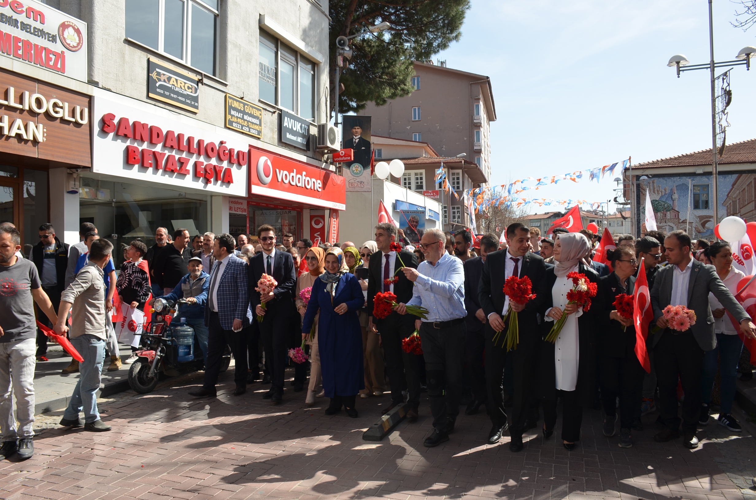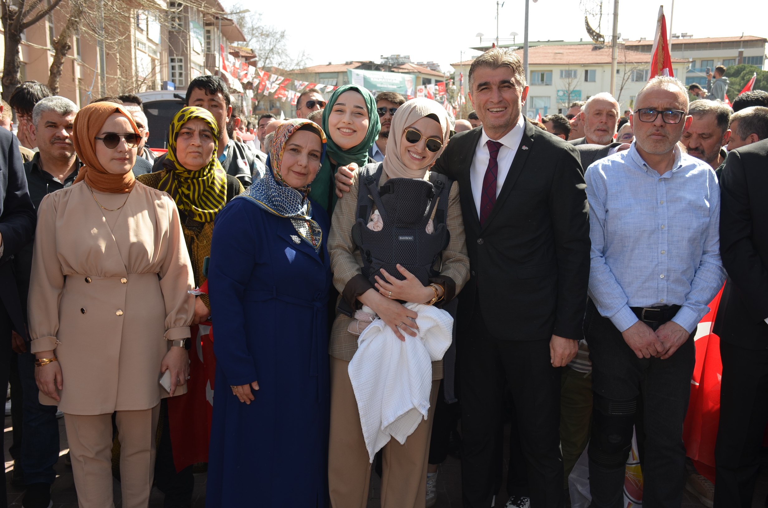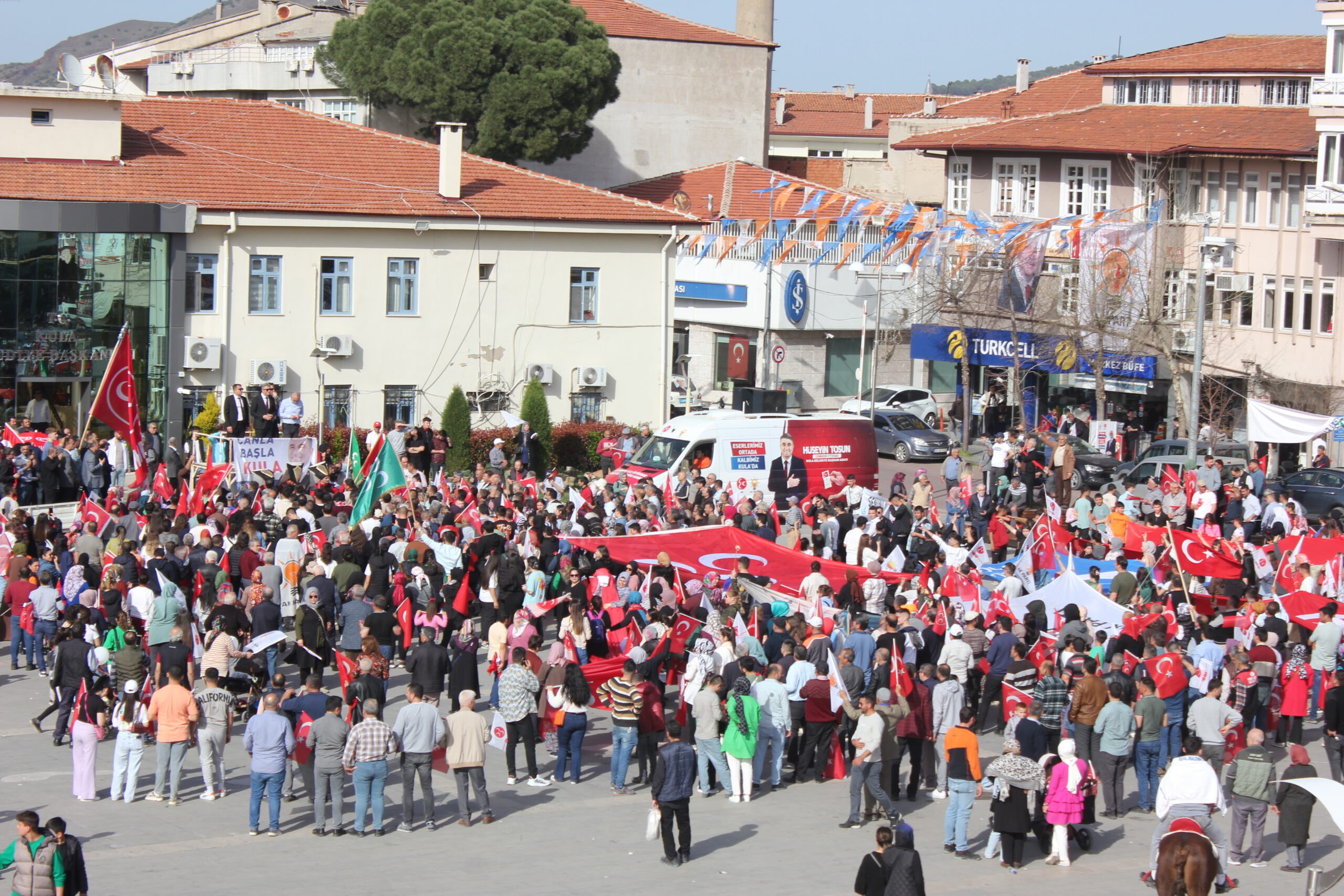 Daha sonra 15:00 17:00 saatleri arasında Cumhur İttifakı adayı mevcut belediye başkanı Hüseyin Tosun, Cumhur İttifakı İlçe Başkanları ve 10 bine yakın partili ve vatandaşla birlikte yürüyüşlerini gerçekleştirerek Kent Meydanına döndüler. Cumhur İttifakı Adayı Hüseyin Tosun meydana toplanan yoğun kalabalığa hitaben konuşma yaptı. Başkan adayı Tosun’un konuşması sık sık alkışlarla kesilirken Başkan Tosun partililerden destek istedi ve göstermiş oldukları ilgiden dolayı katılım sağlayan herkese teşekkür etti.