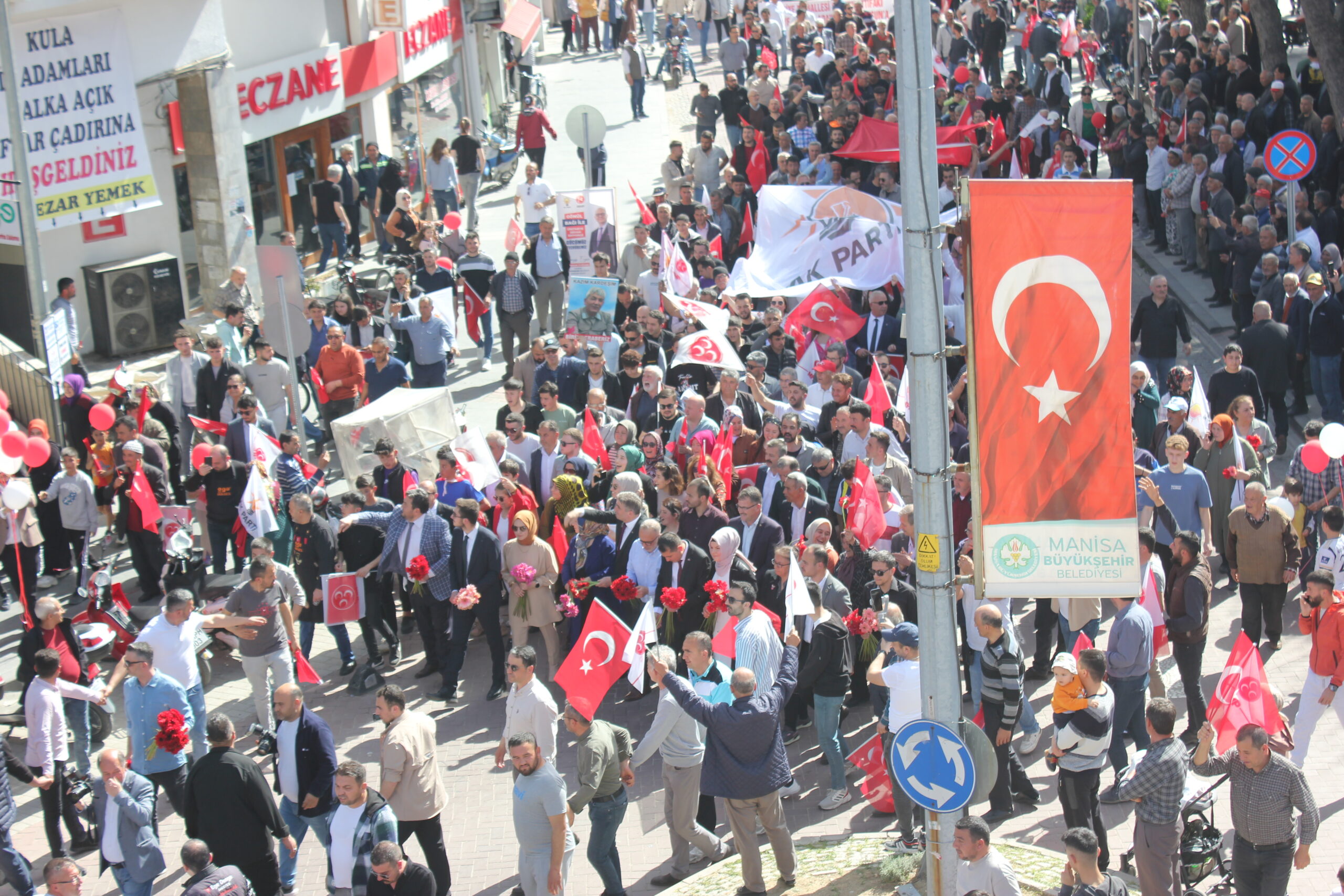 31 Mart Mahalli idareler yerel seçimlere katılan siyasi partiler Kula’da bugün yürüyüşlerini gerçekleştirdiler. İlk Olarak Cumhuriyet Halk Partisi 13:00 15:00 saatleri arasında Kent Meydanında toplanan 2000’e yakın partili ile Belediye Başkan adayı Hikmet Dönmez ile beraber belirlenen güzergahta yürüyüş yaptılar.