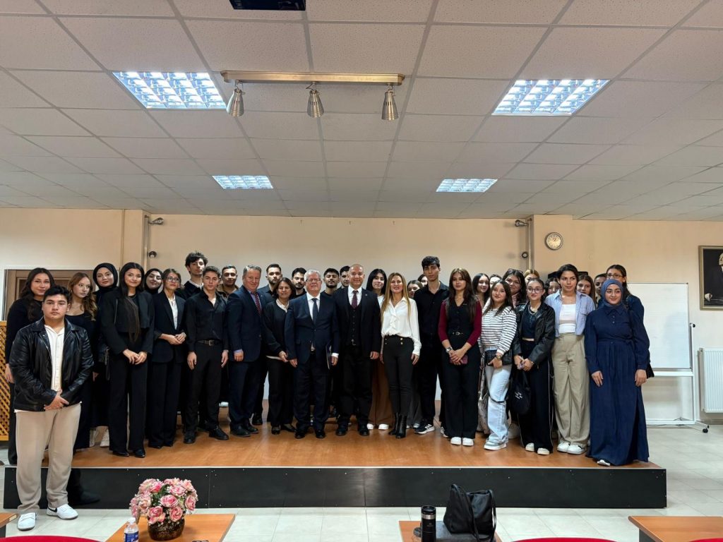 Gerçekleştirilen söyleşide, Neufarm Kurucusu ve Yönetim Kurulu Başkanı Mehmet Güven, kimya sektörünün ihracattaki stratejik önemi, üretim süreçlerinde sürdürülebilirlik uygulamaları ve yenilikçi teknolojiler hakkında kapsamlı bilgiler paylaştı. Öğrencilerle samimi bir ortamda gerçekleşen programda, kariyer planlaması, girişimcilik ve sektördeki fırsatlar üzerine verimli bir sohbet gerçekleştirildi.