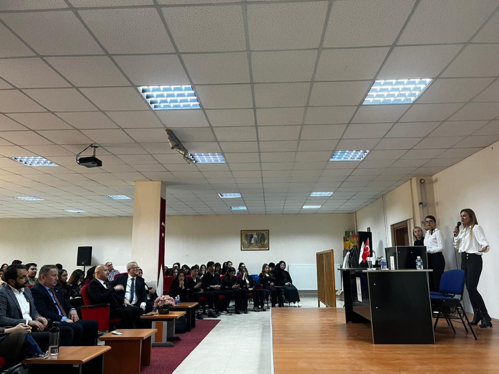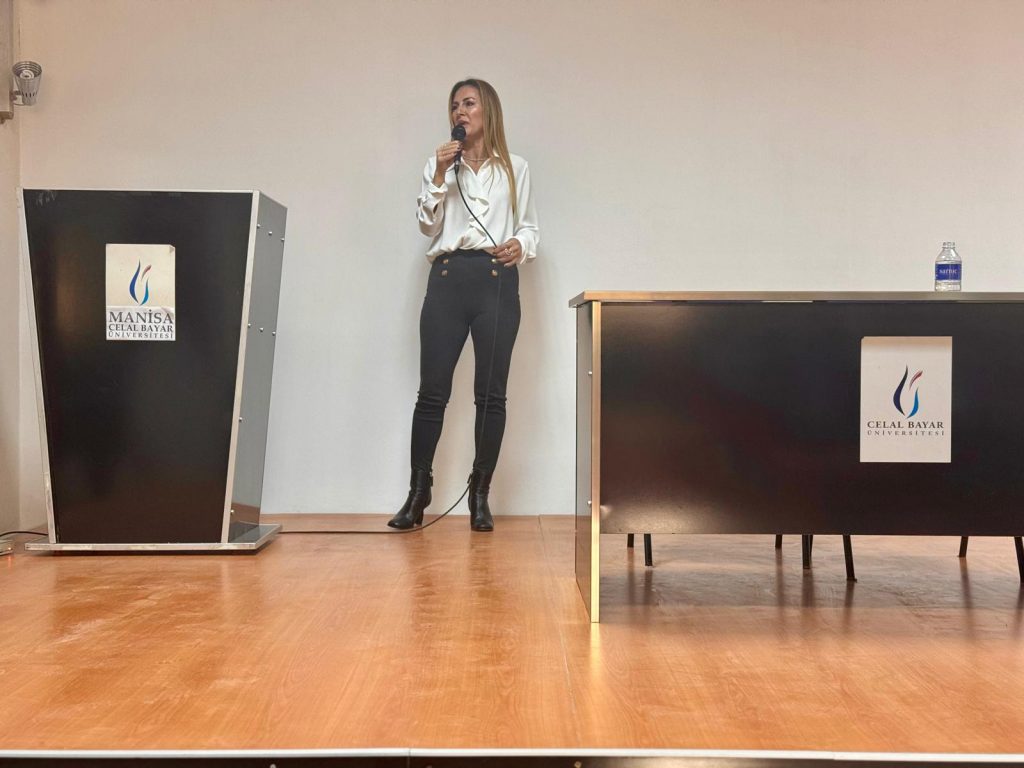 Program akışı dışında, daveti kırmayarak öğrencilerle buluşan Yüksek Kimya Mühendisi, EGİAD Yönetim Kurulu Üyesi ve İtalya Sanayi ve Ticaret Odası Yönetim Kurulu Üyesi Aslı Güven, kimya alanındaki uluslararası deneyimlerini paylaşarak öğrencilere kariyer yolculuklarında ilham verdi.