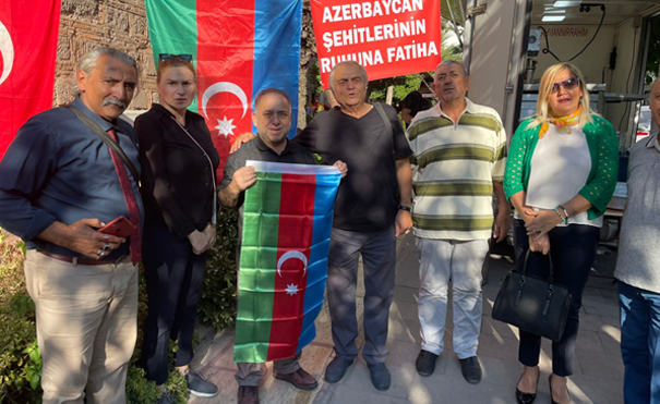 Ülker yaverli ve Nermin gardaşova Azerbaycanlı Türkiye’de yaşayan Manisa’lı Kadınların katılımıyla yapılan Türkiye ve Azerbaycan Bayrakları ile süslenmiş alanda Etrafı saran insan topluluğu Ermenistan’a Kınama mesaji verdi. Toplantıda açıklama yapan TADDEF Başkan Vekili Seyfettin Ayakyay Konuşmasında, “12 Eylül gecesi Azerbaycan-Ermenistan sınırının bazı bölgelerinde çatışmalar meydana geldi. Azerbaycan tarafından yapılan açıklamada 12 Eylül gecesini, 13 Eylüle bağlayan sabah vakitlerinde Ermenistan Silahlı kuvvetleri tarafından Daşkesen, Kelbecer, Laçin ve Zengilan bögelerinde Mayın döşeme ve Top ateşli saldırı yaptıkları, saldırıda Azerbaycan tarafından 50 Askerimizi şehit verdik, yaralıların bulunduklarını duyuruldu. Son duruma bakıldığında Azerbaycan’ın 79 Şehit verdiği görülmektedir. Azerbaycan Silahlı Kuvvetleri’nden 282 askeri personel yaralandı ve Ermeni silahlı kuvvetlerinin barış bozmada tarihin akımsallığındaki saldırganlığı Dünya kamuoyunun bilmesine rağmen suskunluğu düşündürücü olmaktadır. Başta Fransa ve Lübnan olmak üzere Ermeni kökenlilerin Azerbaycan’ın Elçilik binalarına saldırmalarına kayıtsız kalarak göz yummalarını şiddetle kınıyoruz ve ABD Temsilciler Meclisi Başkanı Nancey Pelosi’nin, Ermenistan Meclis Başkanı Alen Roberti Simonyan ile başkent Erivan’da düzenlediği ortak basın toplantısında, Azerbaycan tarafından Ermenistan topraklarına saldırılar düzenlendiği yalanını ileri sürmesi, ABD’nin Kirli Emperyalist oyunlarını Ermenistan üzerinden, Azerbaycan’ı hedef göstermesini ve Güney Kafkasya’ya taşıma arzusunu şiddetle kınıyoruz.” Dedi.