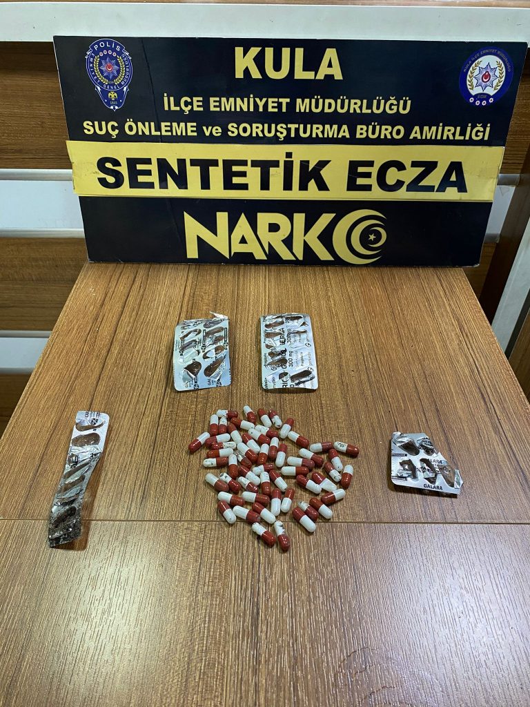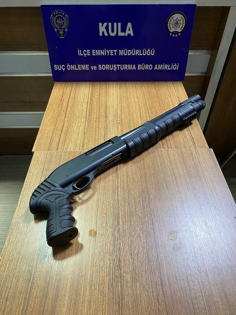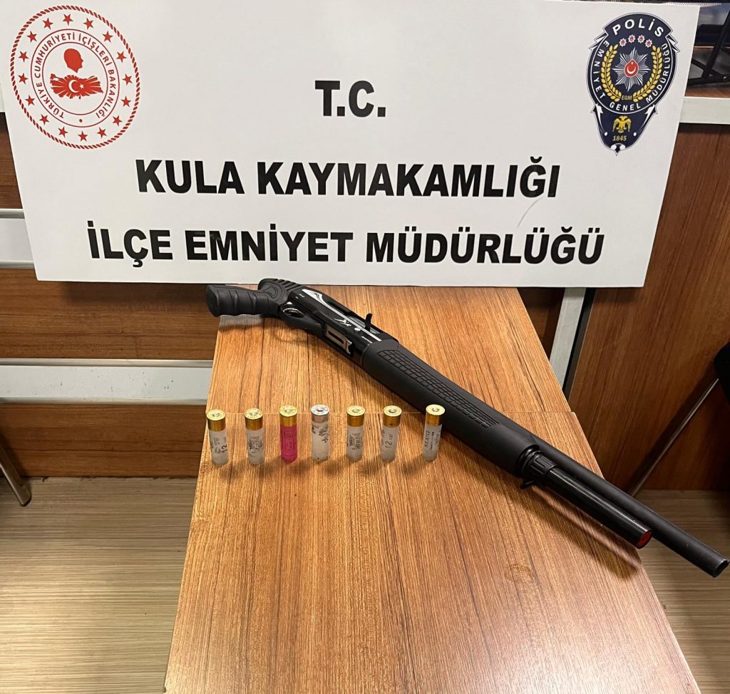 Manisa’nın Kula ilçesinde emniyet güçleri okul çevrelerinde adeta kuş uçurtmuyor. İlçe Emniyet Müdürlüğü ekiplerinin gerçekleştirdiği denetimlerde 2 adet pompalı tüfek, 2,5 gram “Jamaika” adlı uyuşturucu madde ve 53 adet Galara hap ele geçirildi.